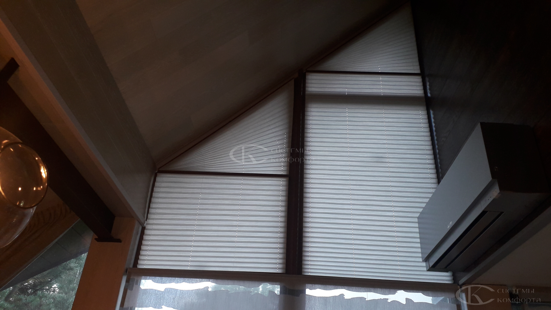 Компания «Системы комфорта» изготавливает жалюзи на треугольные окна и на другие проемы нестандартной формы по индивидуальному заказу. Чаще всего они встречаются в мансарде: окно треугольной формы размещается на фронтоне и помогает обеспечить естественное освещение подкровельного пространства. Однако и в других помещениях могут быть оконные проемы необычной формы, для которых необходимо изготовить персональные системы управления светом.