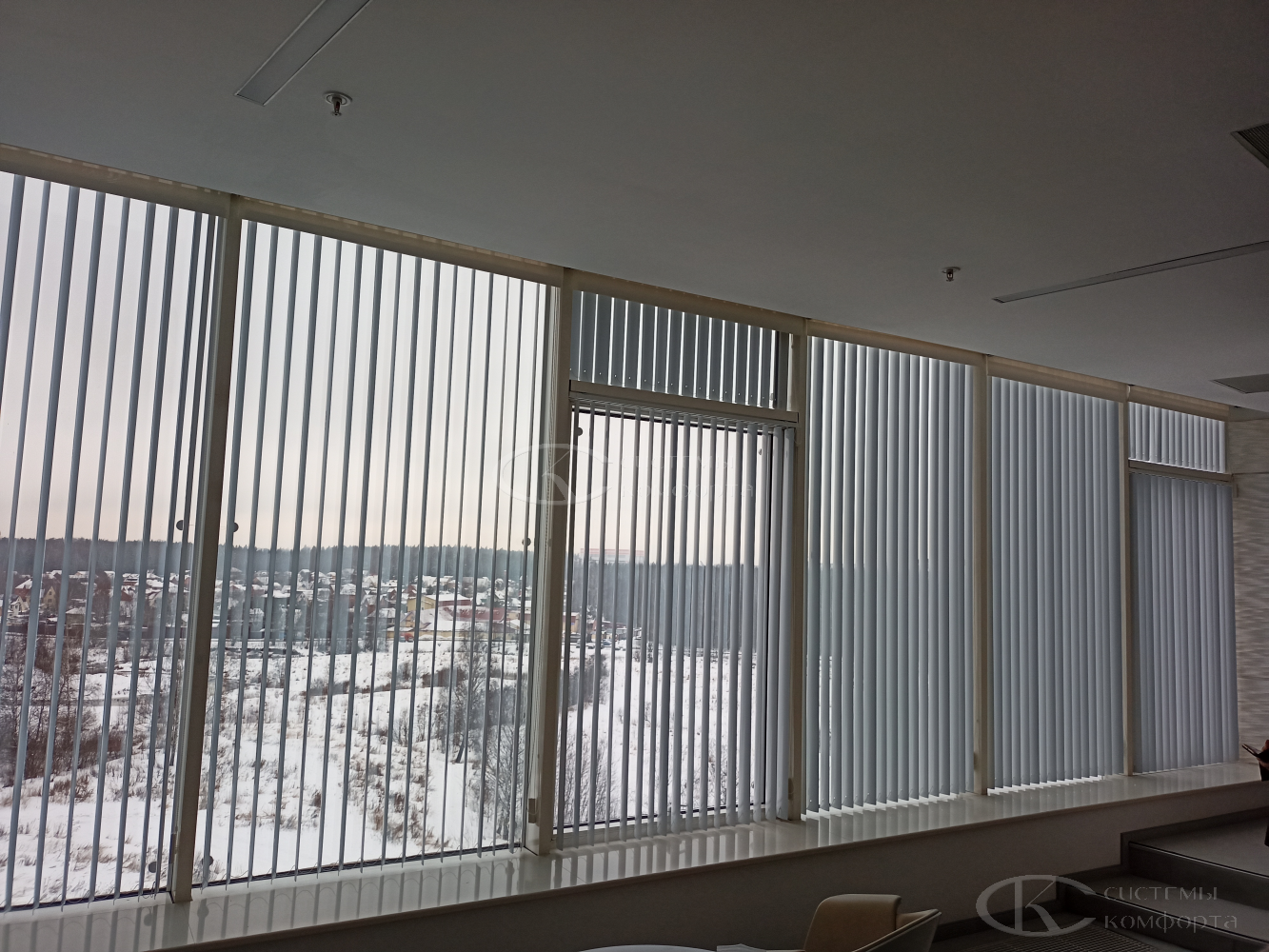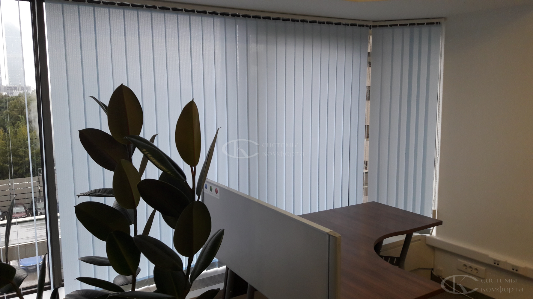 Вертикальные тканевые жалюзи — недорогой вариант солнцезащитной системы для дома или офиса. Они хорошо защищают помещение от солнца. Недостатком такой системы считаются быстрая поломка при неаккуратном обращении и загрязнение ткани при проветривании помещения. Но если очистить от грязи и пыли их не получается, то задача решается путем недорогой замены ламелей. Из преимуществ можно отметить огромный выбор цветов и фактуры, а также возможность нанесения фотопечати: картинки или логотипа. Бесплатный замерщик поможет выбрать модель и определиться с решением. Персональный менеджер поможет сделать предварительный расчет.